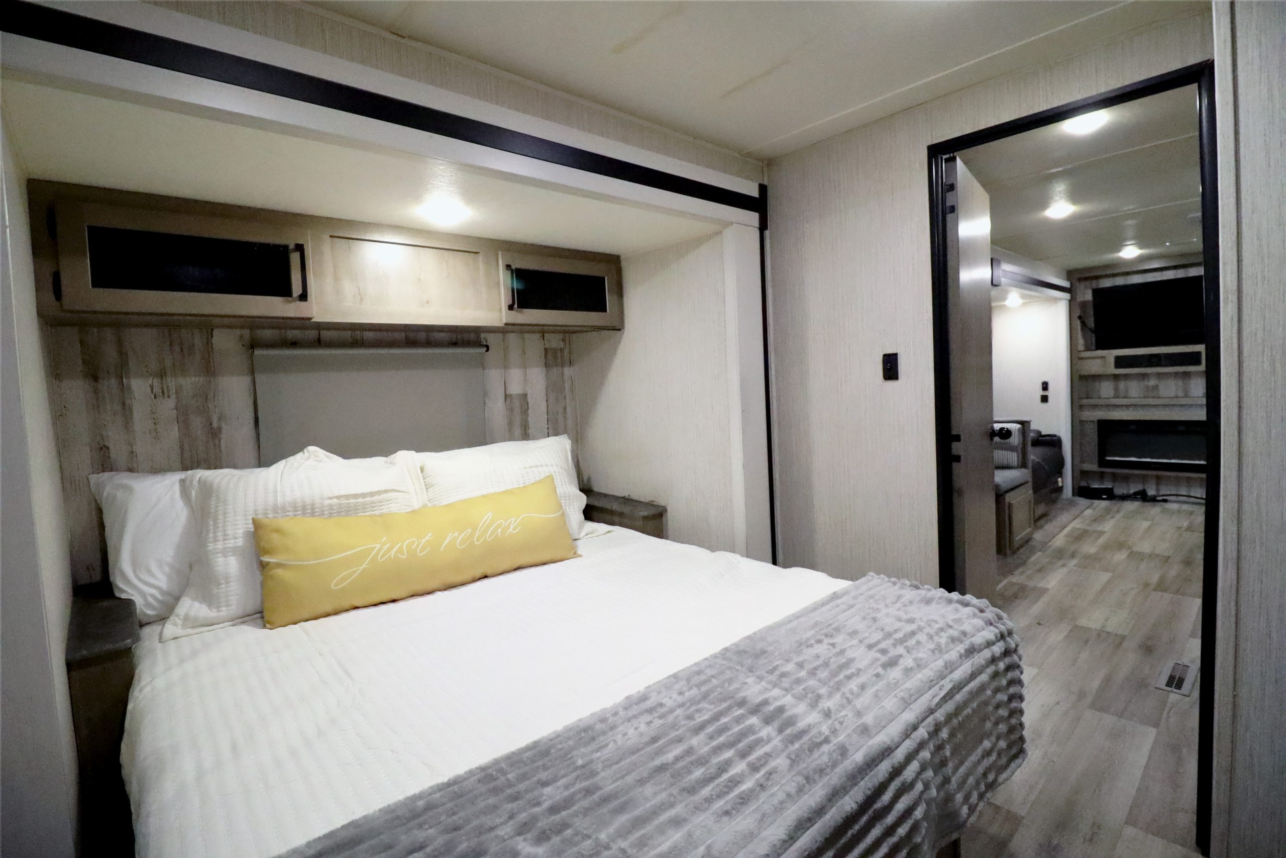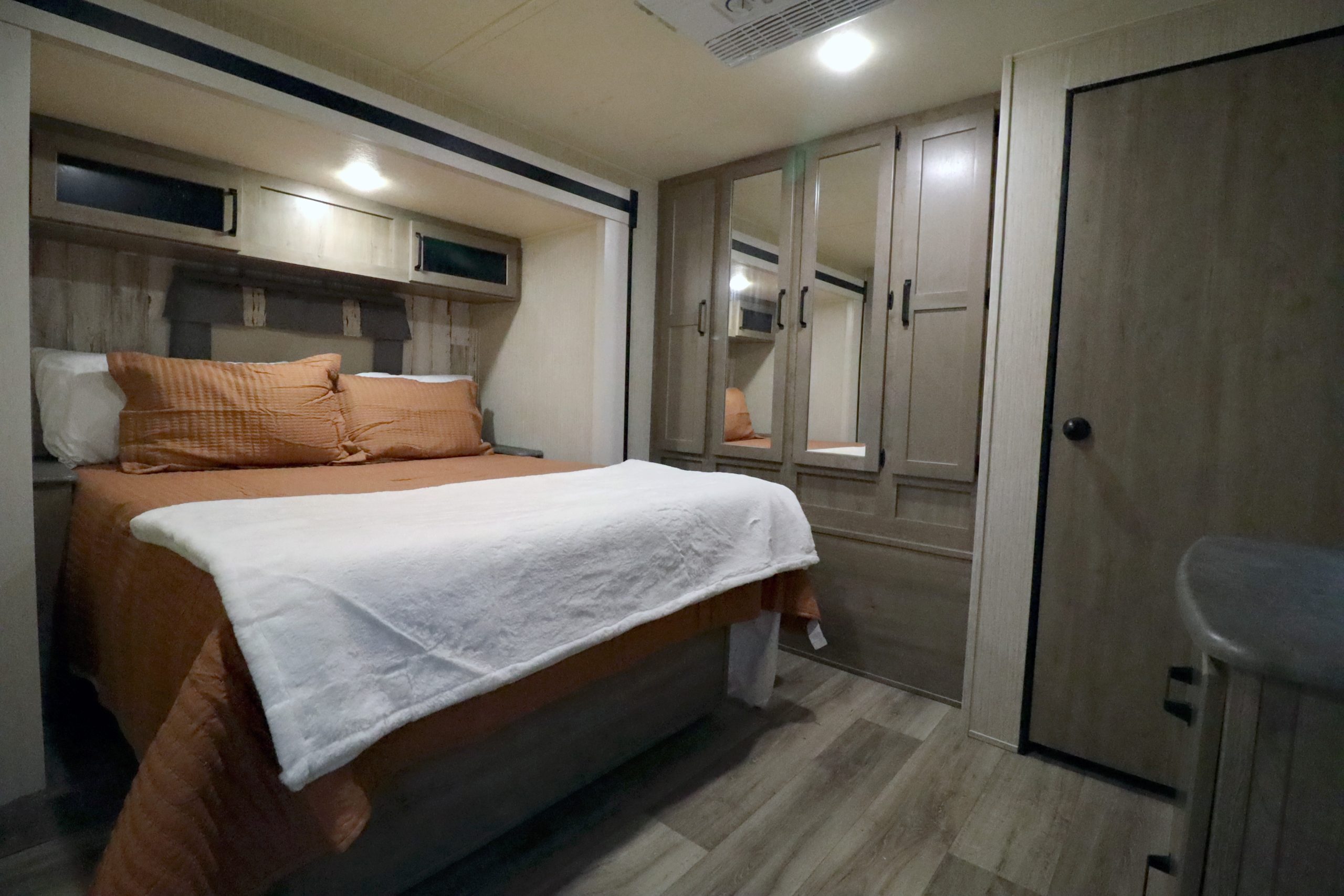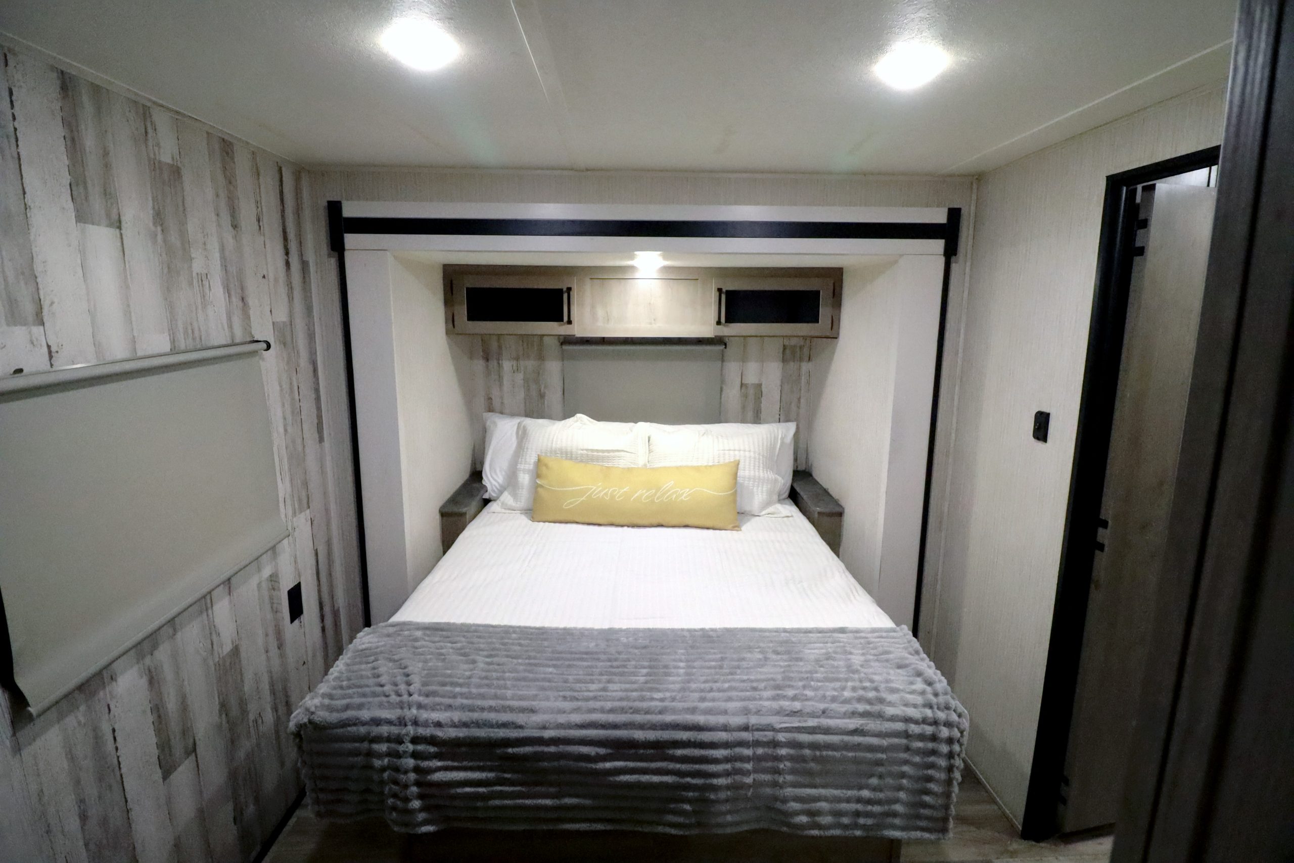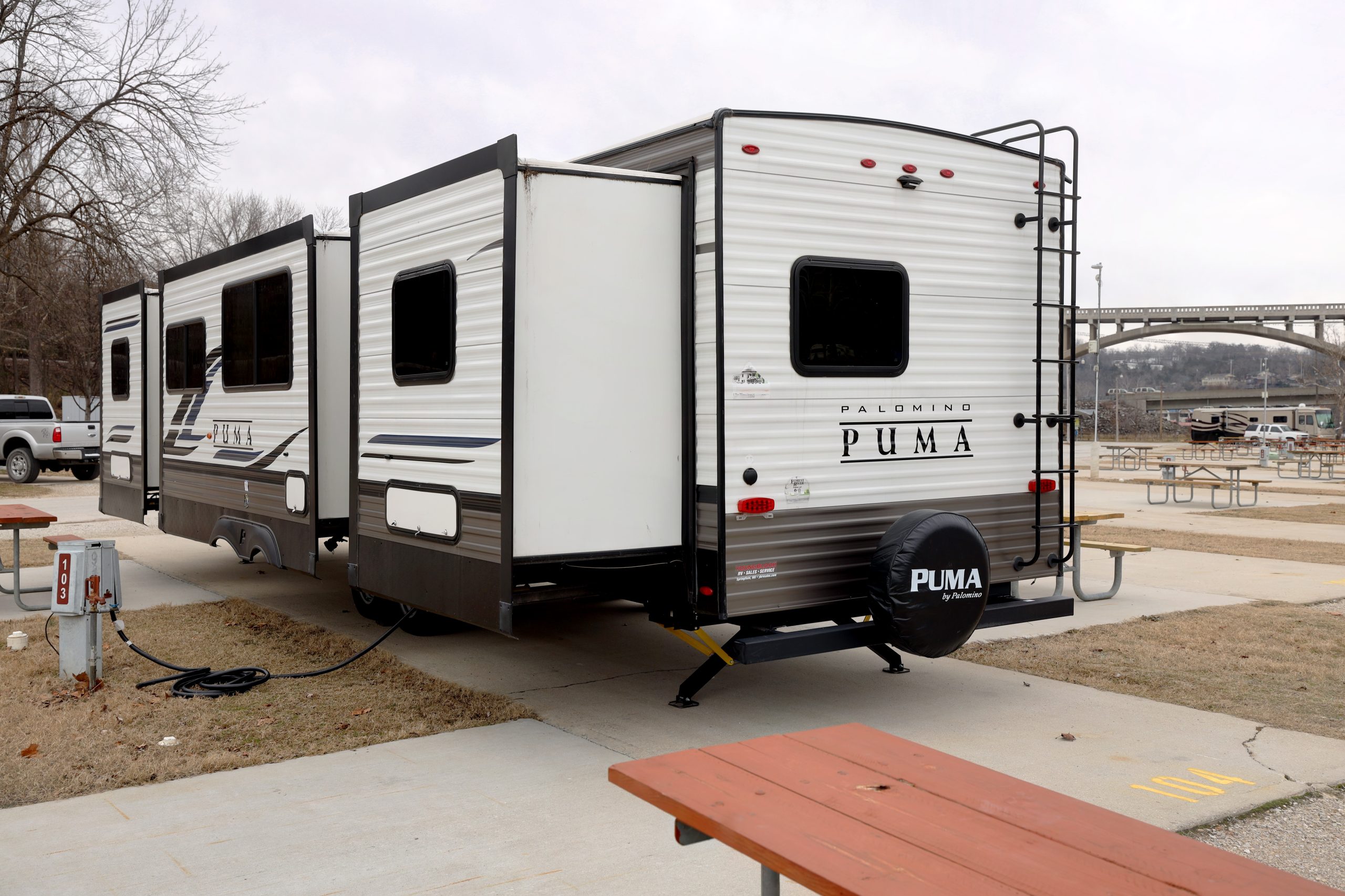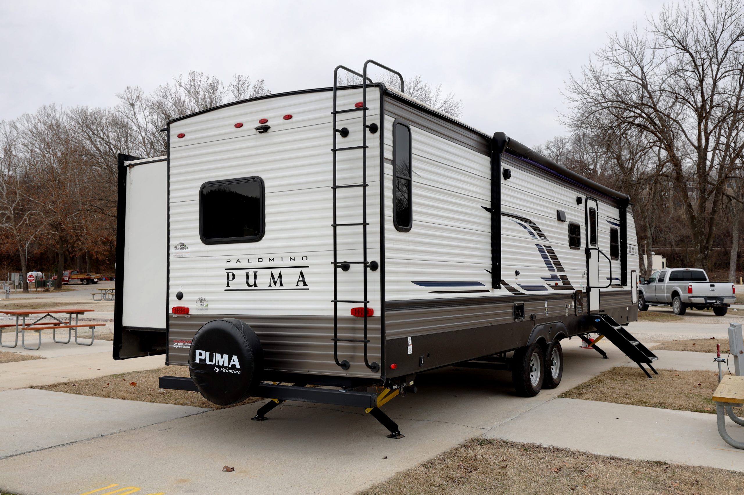 Imagine waking up to the sound of birds chirping and the gentle breeze blowing through the trees, all from spending your vacation camping in the great outdoors, with all the comforts of home! Welcome to “Gratitude” our 2022 Palomino Puma 32RBFQ2! This luxury camper is the perfect choice for couples looking to experience the beauty of nature in style. With its theater seating, Apple TV ready and Roku TV, you can snuggle up and watch your favorite movies or shows together. One of the standout features of the Puma is the 2-bedroom, 2-queen bed layout! This comfortable and spacious seating area is perfect for relaxing and watching a movie or your favorite TV show. And with Apple TV and Roku TV ready, you’ll have access to all your favorite streaming content. In addition to its luxurious features, the Puma towable with a dry weight 9,237-lbs and a 10,500-lbs GVWR. The LED awning provides a great shading while enjoying the outdoors and the slide out provides more space while in the RV. As the day progresses, you’ll find yourself enjoying the great outdoors and all the activities it has to offer. The kid friendly features and tow hitch makes it easy for you to bring along the whole family and make memories that will last a lifetime. And when the day is done and it’s time to head back to the camper, you’ll be grateful for the luxurious amenities that the 2022 Palomino Puma 32RBFQ2 provides, making your camping experience truly one of a kind.