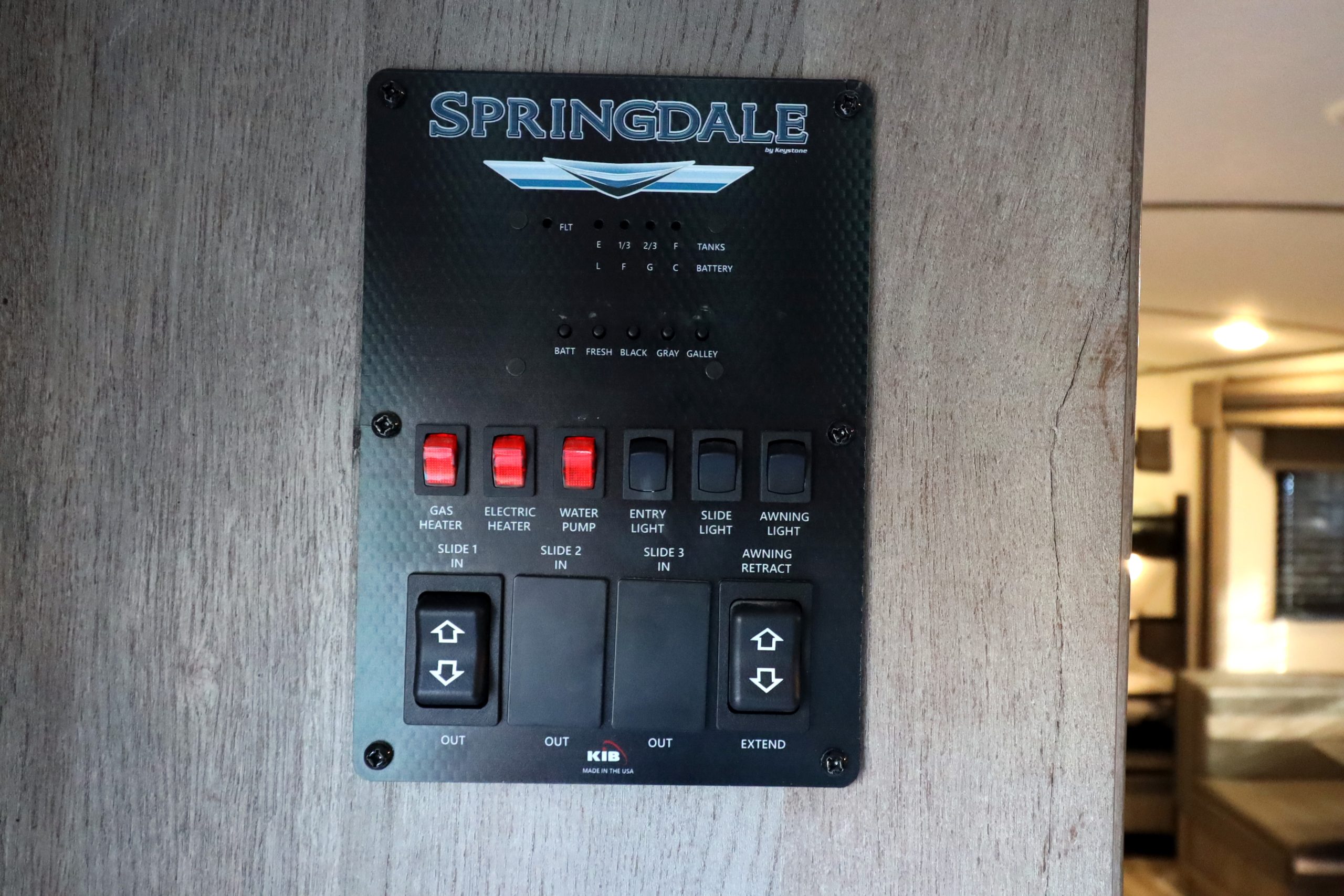 Imagine waking up to the sound of birds chirping and the gentle breeze blowing through the trees, all from spending your vacation camping in the great outdoors, with all the comforts of home! Welcome to “Joy” our 2021 Keystone Springdale 282BH! This luxury camper is the perfect choice for couples looking to experience the beauty of nature in style. With its open seating and TV, you can snuggle up and watch your favorite movies or shows together. One of the standout features of the Springdale 282BH is its open concept with both a couch and a dinette area. In addition to its luxurious features, the Springdale 282BH towable with a dry weight 6,783-lbs and a 8,600-lbs GVWR. The awning provides a great shading while enjoying the outdoors and the slide out provides more space while in the RV. As the day progresses, you’ll find yourself enjoying the great outdoors and all the activities it has to offer. The kid friendly features and tow hitch makes it easy for you to bring along the whole family and make memories that will last a lifetime. And when the day is done and it’s time to head back to the camper, you’ll be grateful for the luxurious amenities that the 2021 Keystone Springdale 282BH provides, making your camping experience truly one of a kind.