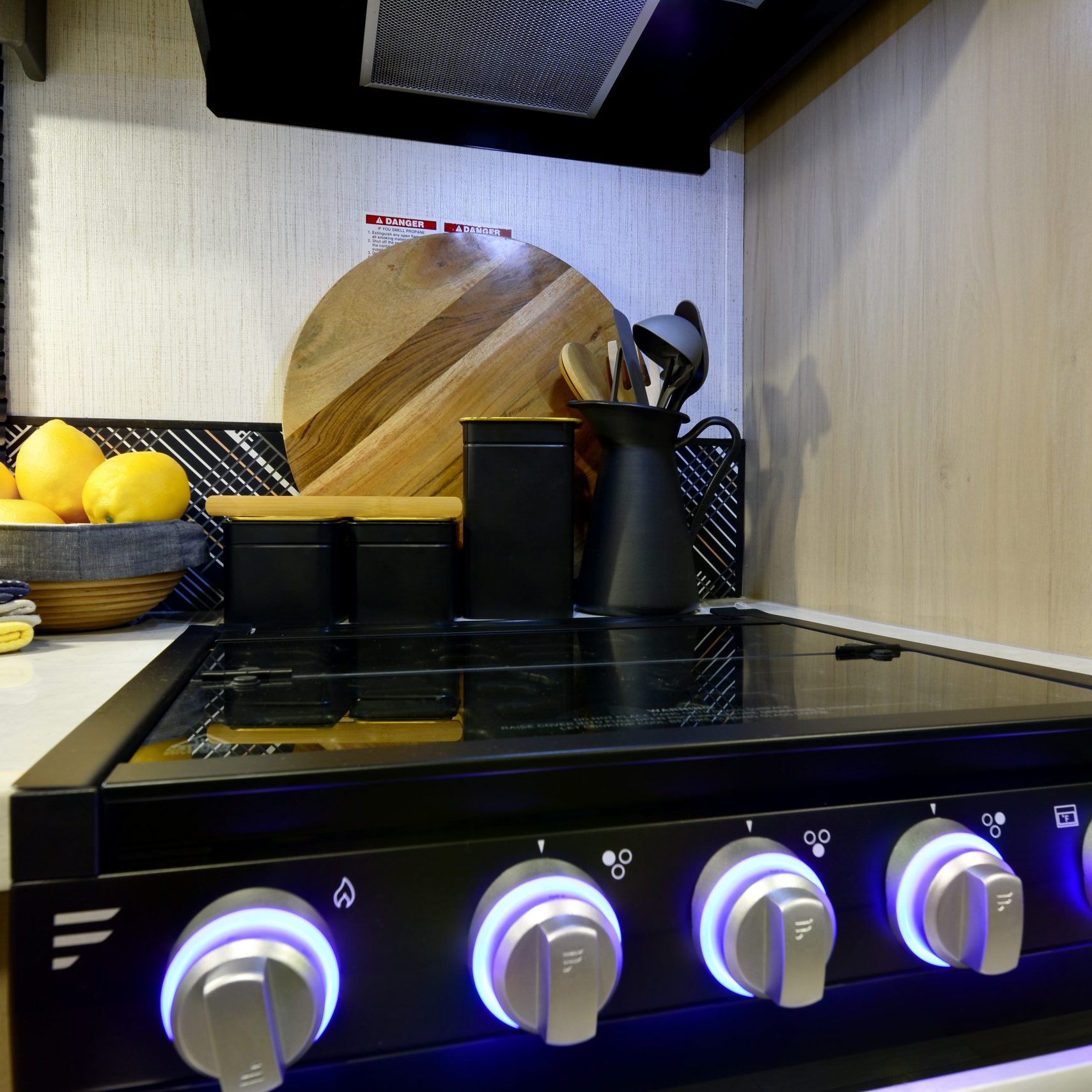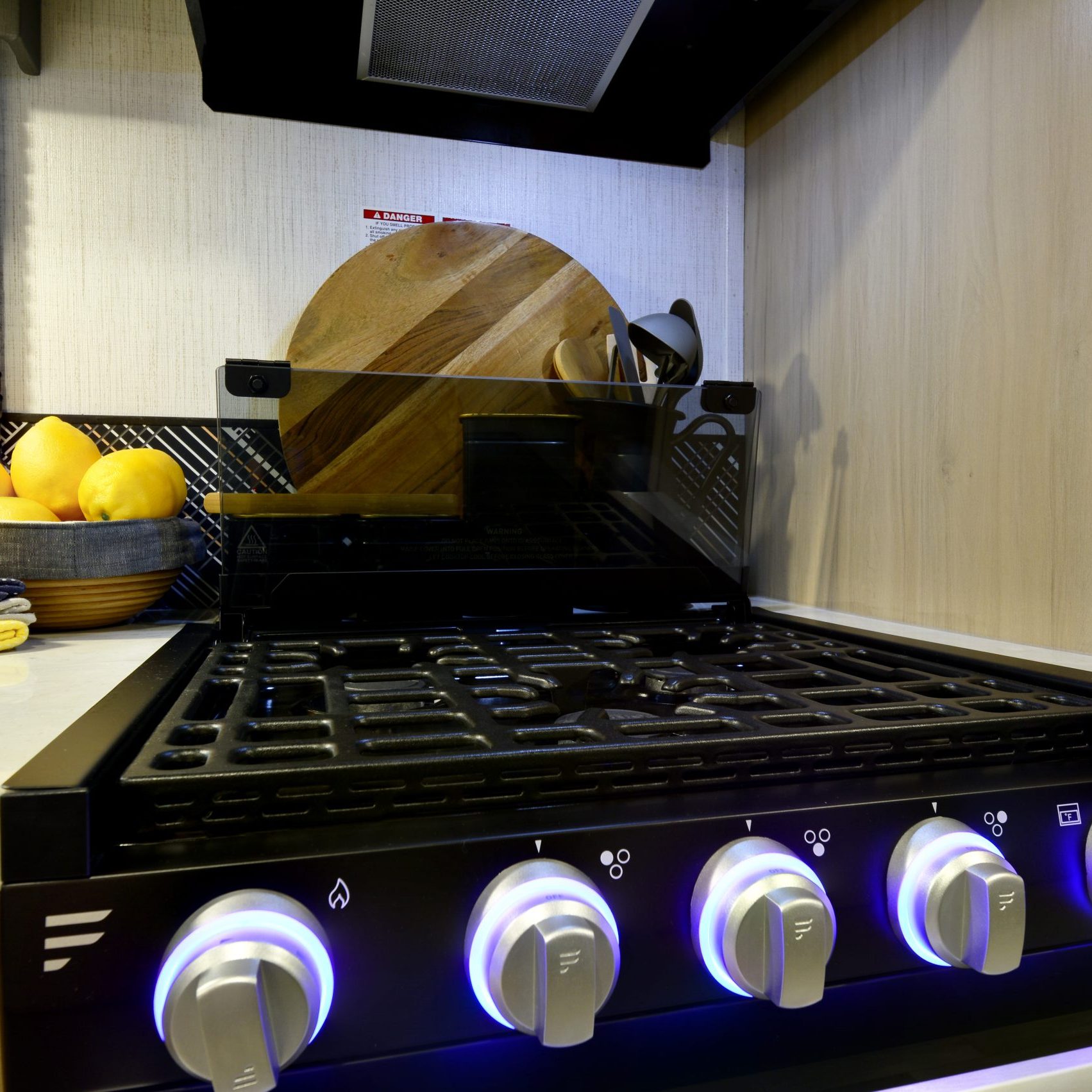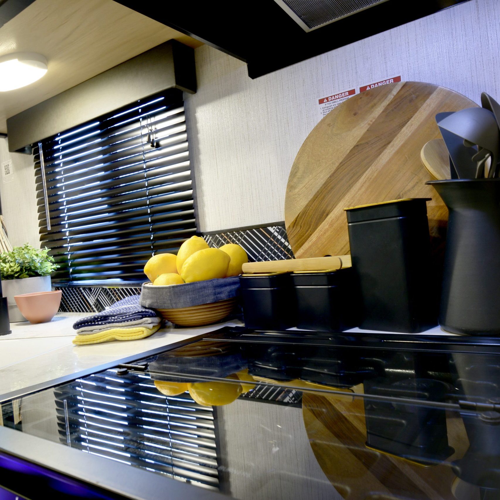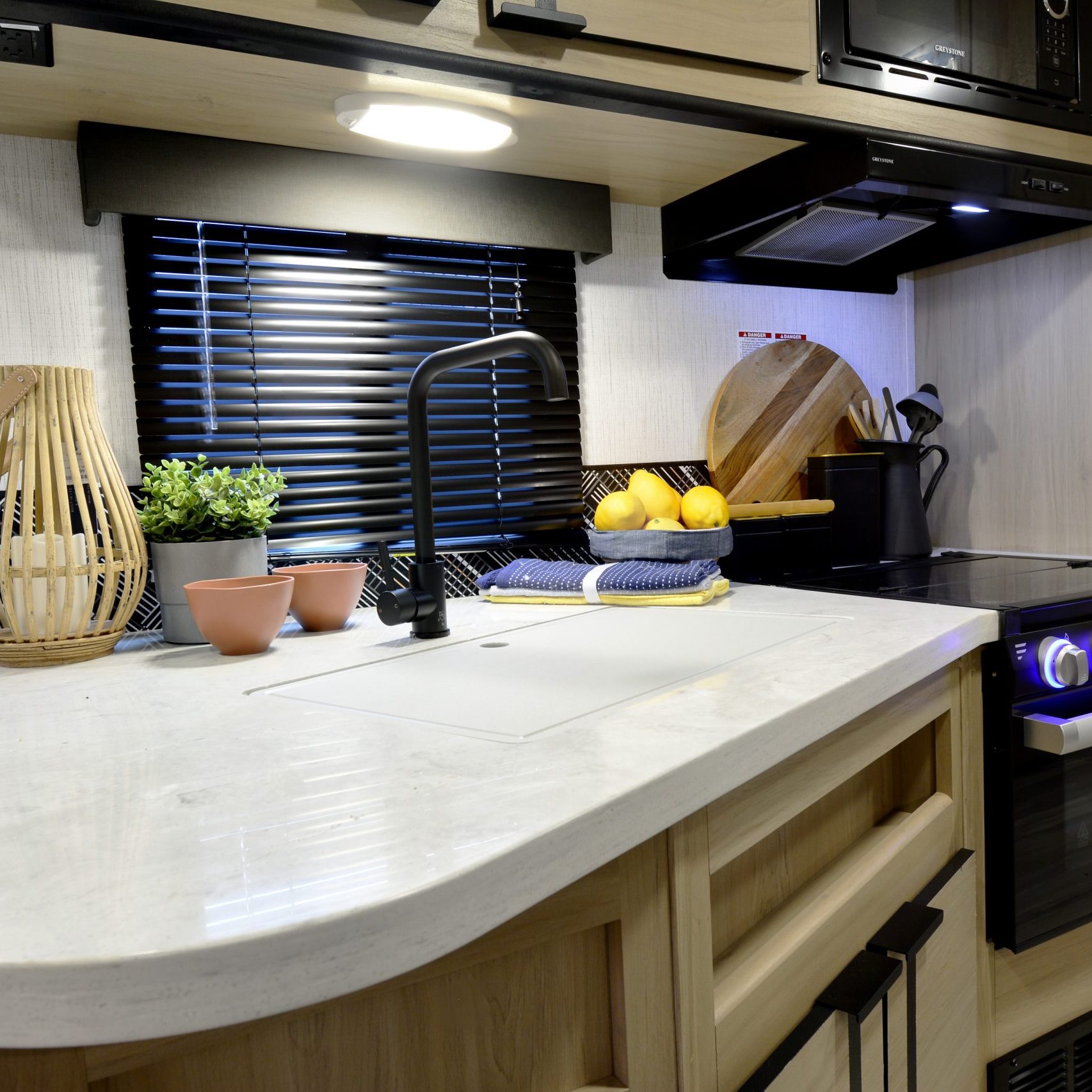 - End Your Day in Comfort After a day of activities, relax in the camper’s luxurious amenities with a super comfy convertible couch for lounging and relaxing.