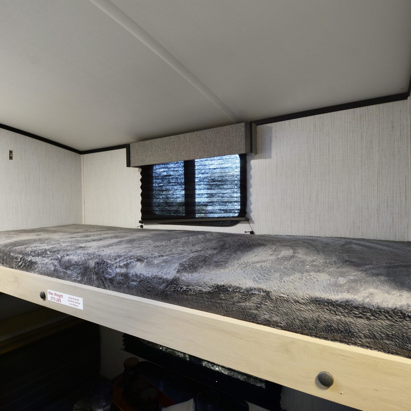 - Separate Secondary Bunk Room: Spacious bunk room with a convertible table with two lounge seats! Plenty of under-bed and cabinet storage.