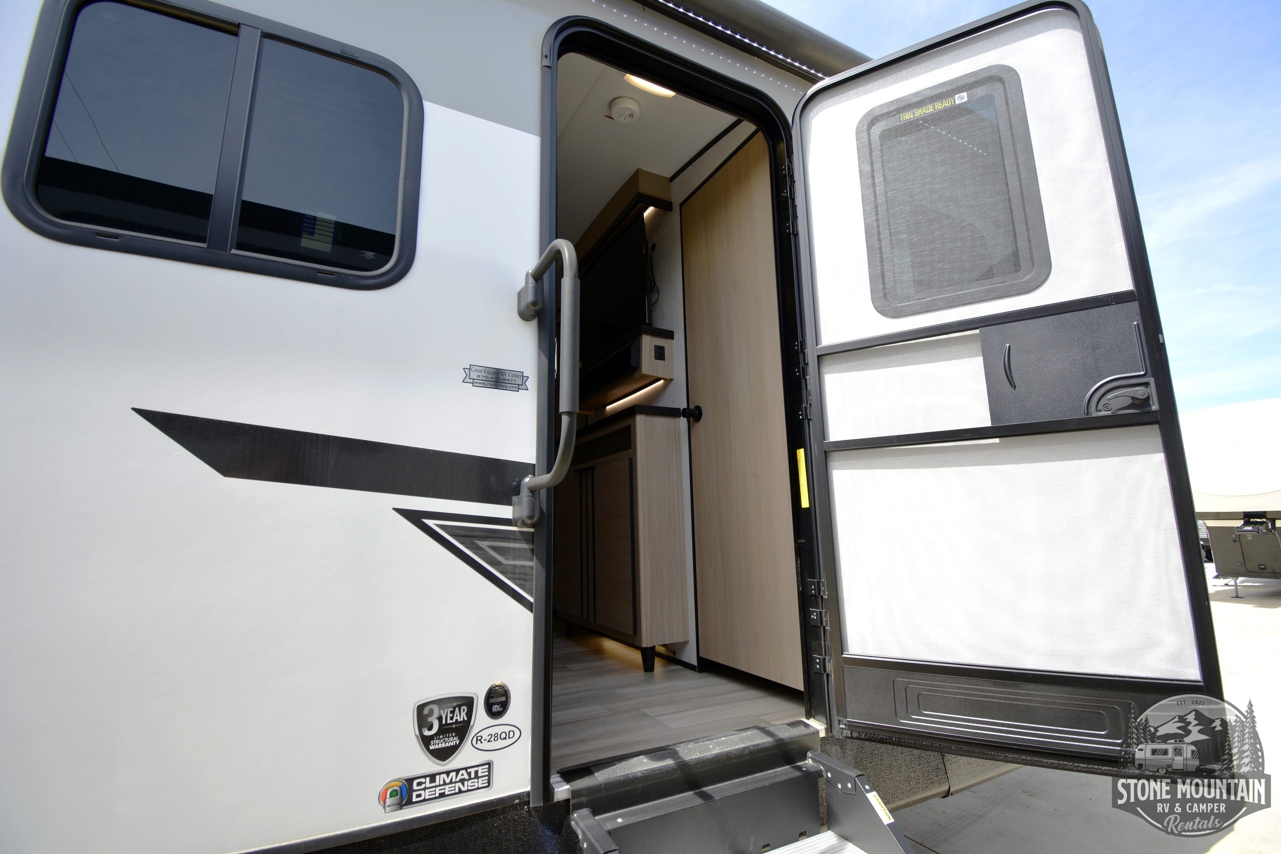Introducing “Wisdom”; our 2022 Cruiser RV Radiance 28QD! Experience the great outdoors in luxury with our new camper. It’s perfect for families and combines nature’s beauty with home comforts.